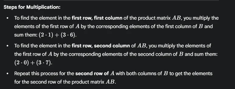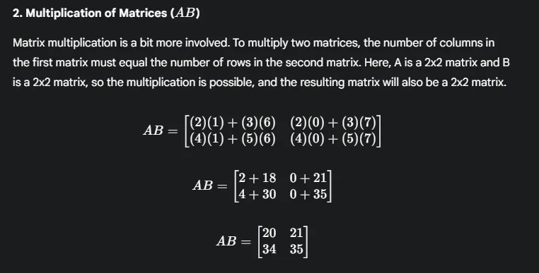 2. Multiplication of Matrices (AB):