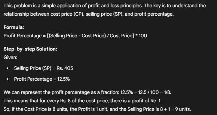 This problem is a simple application of profit and loss principles. The key is to understand the relationship between cost price (CP), selling price (SP), and profit percentage.