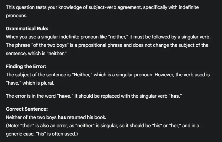 The most direct way to get help. You can type out specific questions, ask for explanations of a mathematical formula, or request a summary of a historical event. For example, “Explain the rules of subject-verb agreement in English grammar.”
